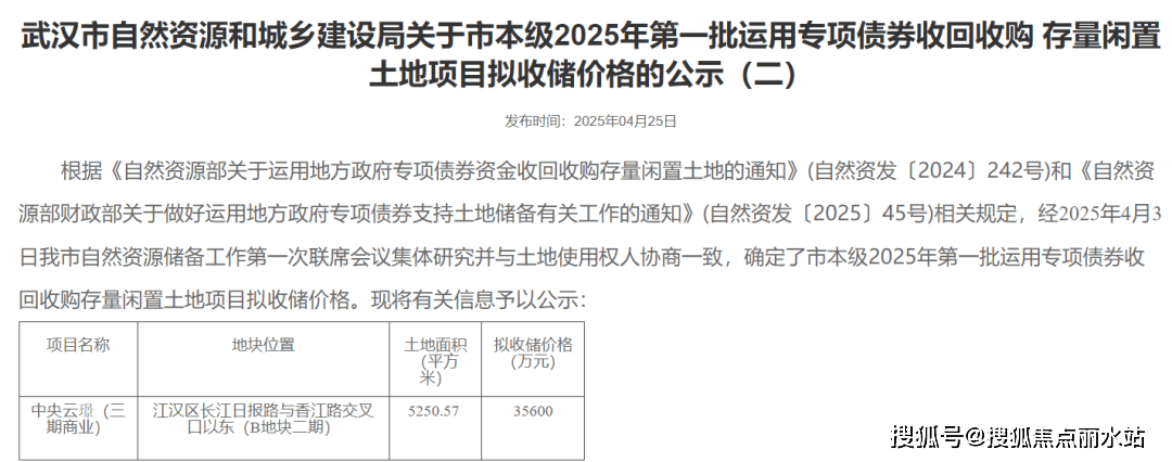 2025年4月25日,成交价42000万元,贸易建面不大于0.19万方!拟收储楼面价约3800元/平。主要声明:以上四组联系体例为武汉城建地方云璟三期 同一联系体例,接着从头进行招拍挂,卑享一对一专属办事。具体如下: