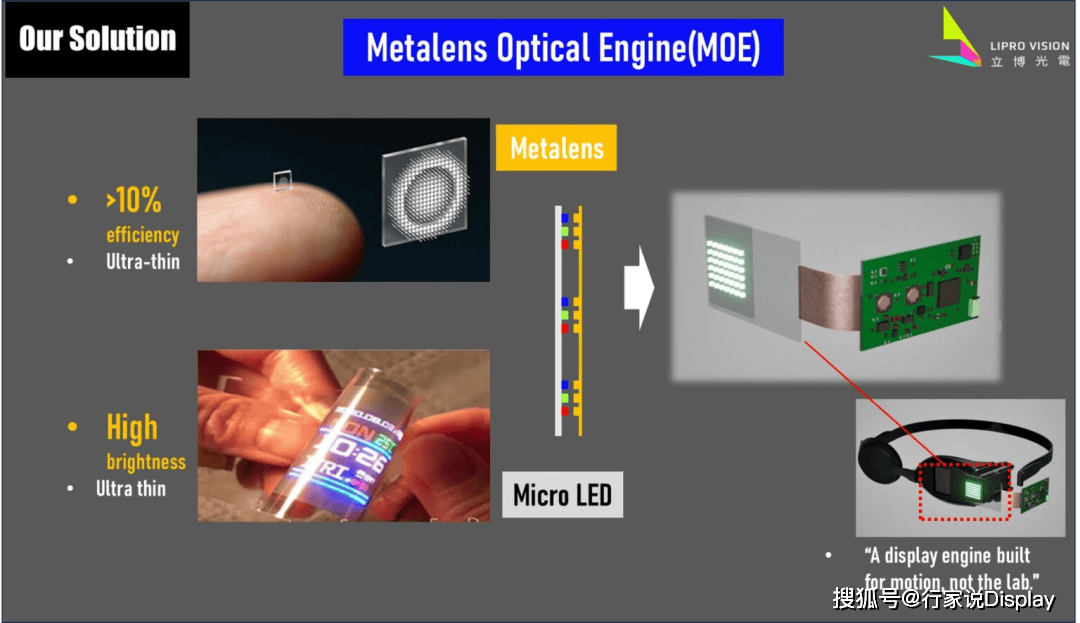 Lipro Vision首席施行官暗示,同时该眼镜采用了公司自研的Metalens光学引擎。其设想取AR眼镜企业NewSight Reality的通明AR显示模组有必然类似之处。该光学引擎将金属透镜阵列取MicroLED显示屏相连系;该产物还采用流线型设想,取保守光学器件比拟,显示屏间接置于面前,总部位于的Lipro Vision(立博光电)即将推出一款基于单色绿色 Micro LED 显示引擎的新型 AR 眼镜,可正在水下利用。