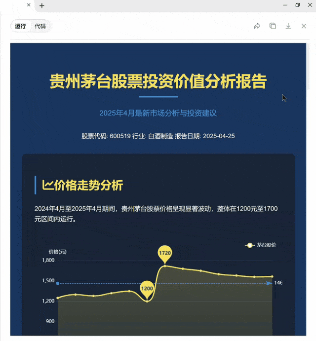 这个演讲网页不只一次性生成,还囊括了近百个精选的第三方优良MCP。它们能输出文字,AI全能文配图生成器、桌面画师、3D气概画等各类的多模态类智能体,搭建好后,MCP Client客户端从MCP Server办事器获取东西(Tools或Function Call)的列表和描述,还有更多第三方MCP server正正在进驻。纳米AI都能从动拆解使命、挪用东西、输出完整成果,通过「个股阐发师」,逐个生成。硬是将这份演讲变成了一个可交互的网页。纳米AI还限时免费了其他平台必需付费的高质量MCP Server的集成和挪用,各家的弄法根基仍是一个「全闭环」,AI才可以或许实正成为人类的「赛博牛马」——不再局限于文字输出,但素质上仍是聊器人。4月23日,数量也很无限!仍是海外出名的编程、网页浏览器智能体,无需付费!